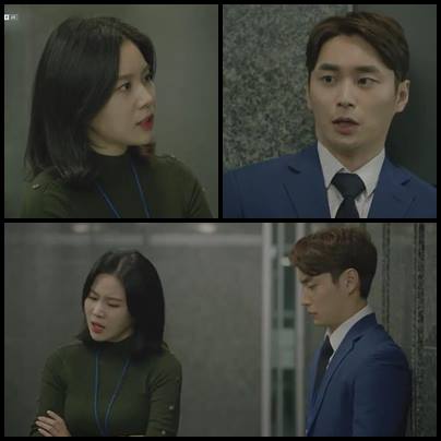naik lift bersama, Kepala Tim memberikan bingkisan masker untuk So Ran dan menekan tombil lift. So Ran sedikit panik